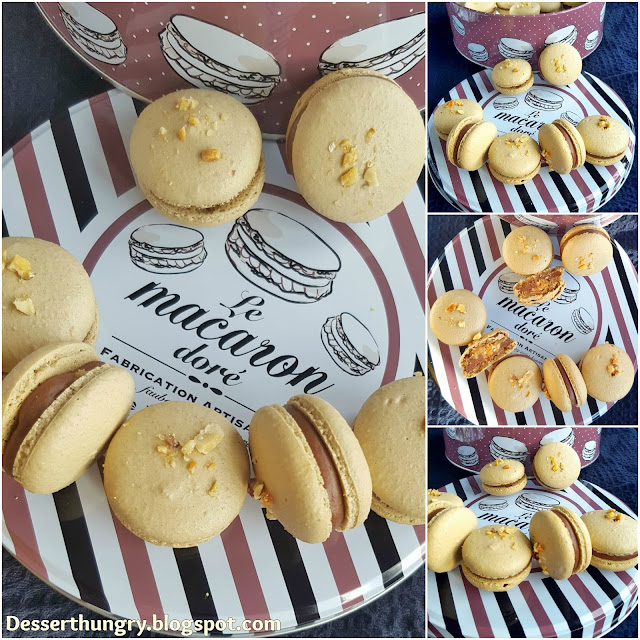 The inspiration for these macarons actually came from my favorite pancake (or more like a crepe). This crepe from our local restaurant is called Snickers. It has a generous nutella filling with peanut butter and it's topped with delicious caramel. I'm not the biggest nutella lover but mixing it with peanuts and peanut butter makes it very delicious.